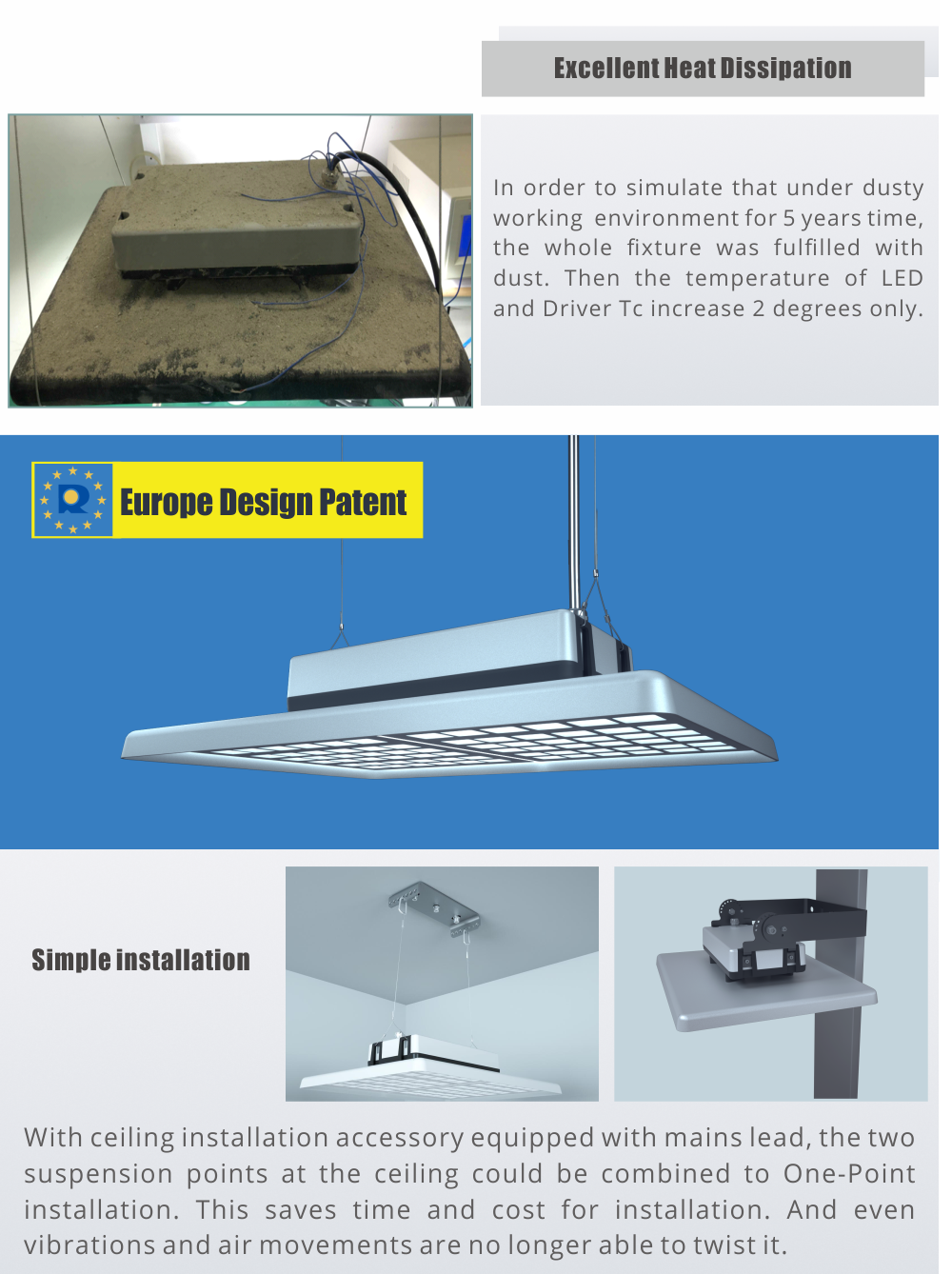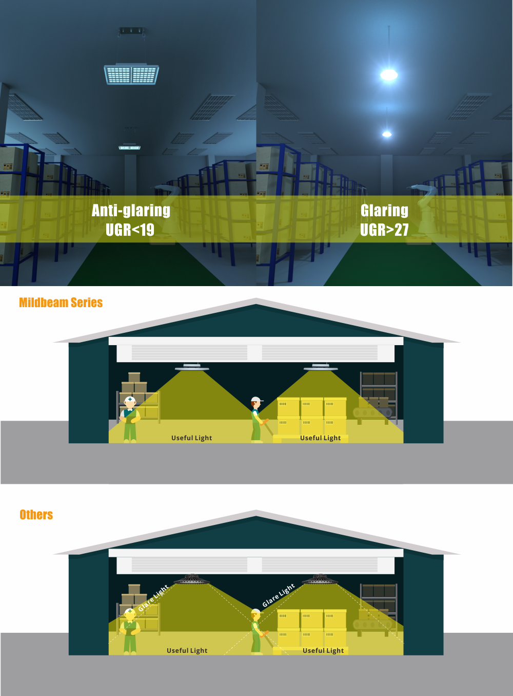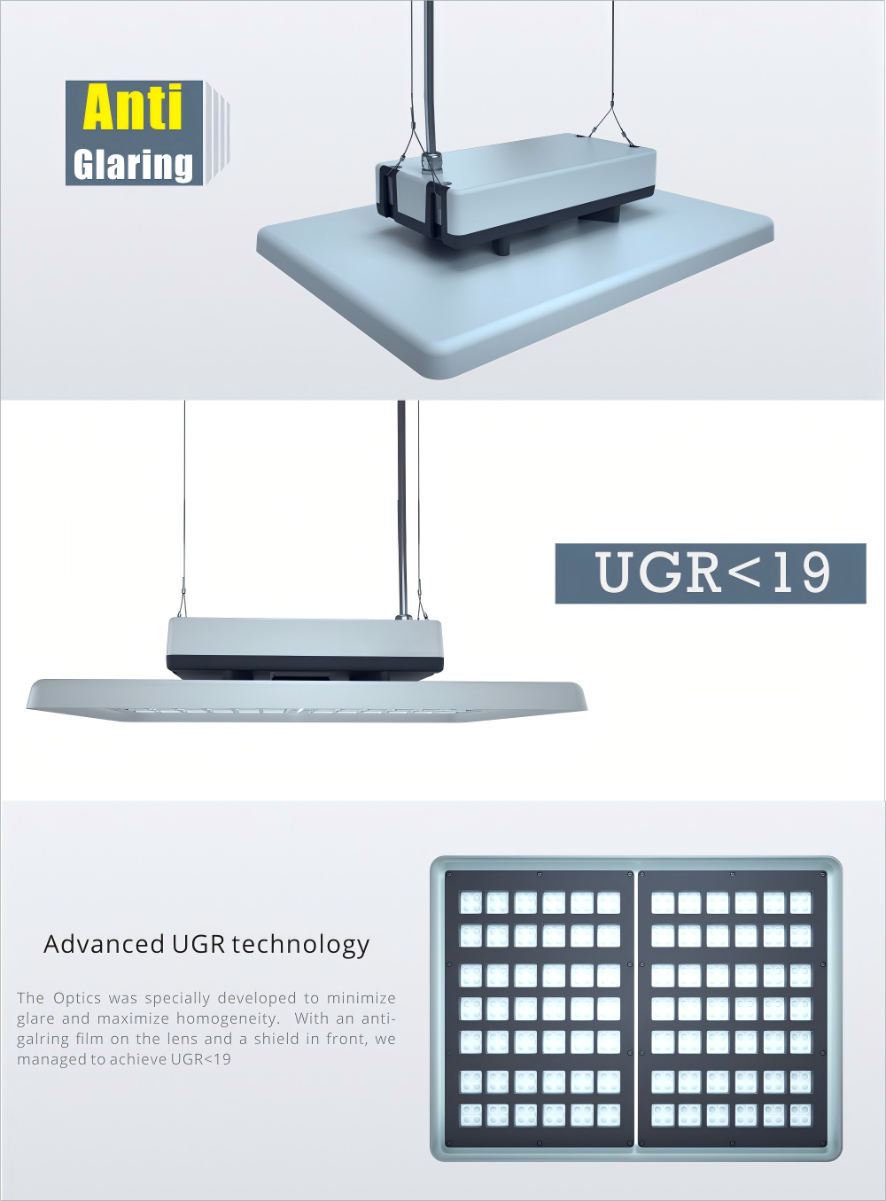 Anti-glaring light is required more and more for applications where people doesn’t feel comfortable with the glaring light, especially when the light were not very high. ACEBEAM is the ideal solution for visual protection. This increases the performance of staff and the quality of their work. The Optics was specially developed to minimize glare and maximize homogeneity. With an anti galring film on the lens and a shield in front, we managed to achieve UGR<21.